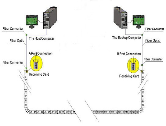 ★具有雙網(wǎng)線熱備份功能,兩臺電腦同時(shí)控制一塊屏,當(dāng)一臺電腦出現(xiàn)問題時(shí),另一臺電腦自動接替,確保顯示屏正常工作;