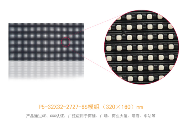 物理密度40000點/㎡ 發(fā)光點顏色 1R1G1B 單元板分辨率 32*32=1024 DOTS